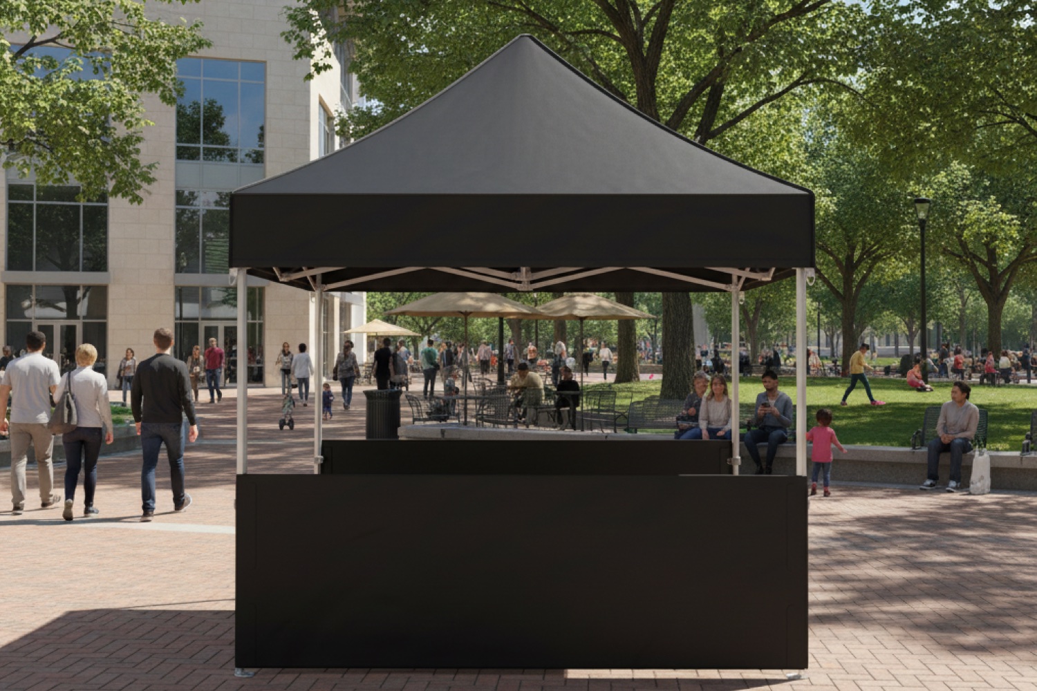Het zeildoek is vervaardigd uit duurzaam 500D polyester met een PVC-coating aan de binnenzijde. De naden zijn dubbel gestikt en afgewerkt met een waterdichte sealing, wat de zijwand geschikt maakt voor intensief en langdurig gebruik. Aan zowel de boven- als zijkanten is de zijwand voorzien van hoogwaardig klittenband van 5 cm breed, waarmee deze zeer solide kan worden bevestigd aan aangrenzende zijwanden.