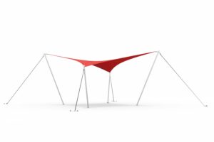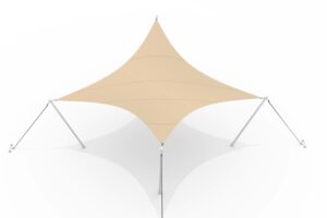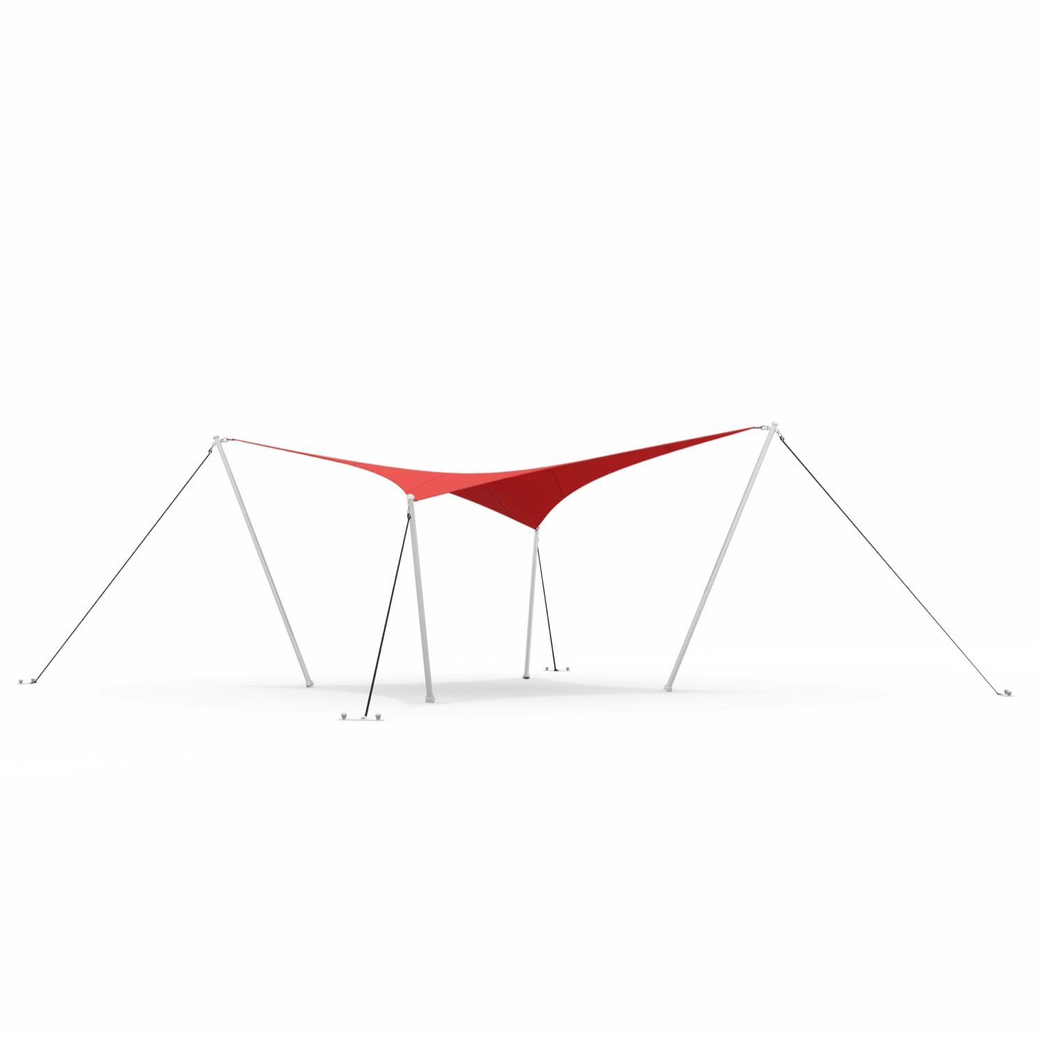 Voor de uitvoering van 4,5 × 4,5 meter is een hoogteverschil van circa 1 meter tussen het hoogste en laagste punt noodzakelijk. Dit hoogteverschil is essentieel om het doek correct op spanning te brengen, water efficiënt af te voeren en het karakteristieke HYPAR-vormeffect te realiseren.