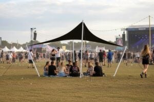De constructie is uitgevoerd met aluminium staanders die licht van gewicht, onderhoudsarm en zeer geschikt zijn voor langdurig buitengebruik. De palen hebben een diameter van 50,8 mm en een wanddikte van 3,18 mm, wat zorgt voor een stabiele en robuuste basis. Het stretchdoek is vervaardigd uit hoogwaardig 2-way stretchmateriaal, is volledig waterdicht en brandvertragend en ontworpen voor intensief gebruik in uiteenlopende weersomstandigheden.