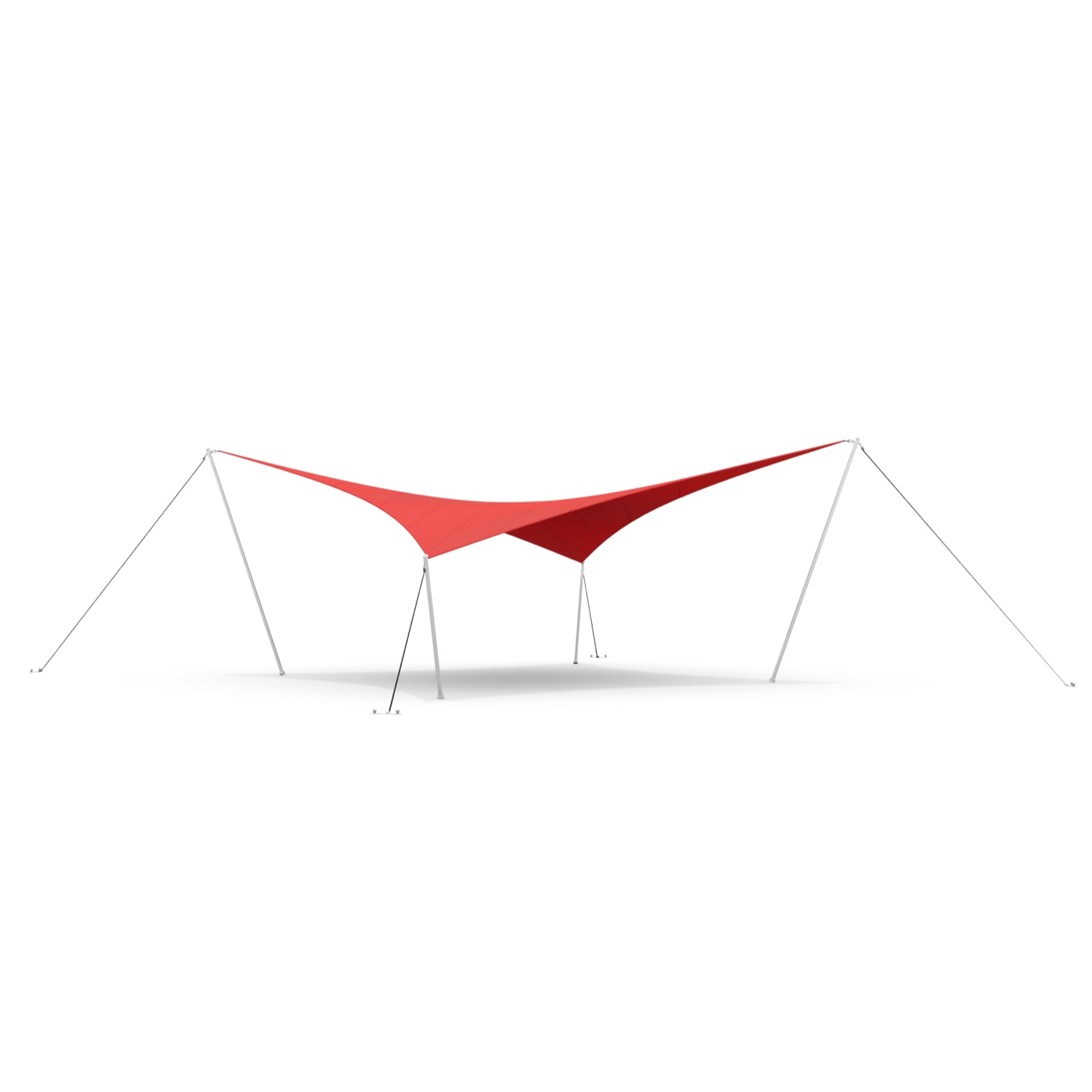 Voor de uitvoering van 7,5 × 7,5 meter is een hoogteverschil van circa 2 meter tussen het hoogste en laagste punt noodzakelijk. Dit hoogteverschil is essentieel om het doek correct op spanning te brengen, water efficiënt af te voeren en het kenmerkende HYPAR-vormeffect optimaal tot zijn recht te laten komen.