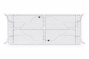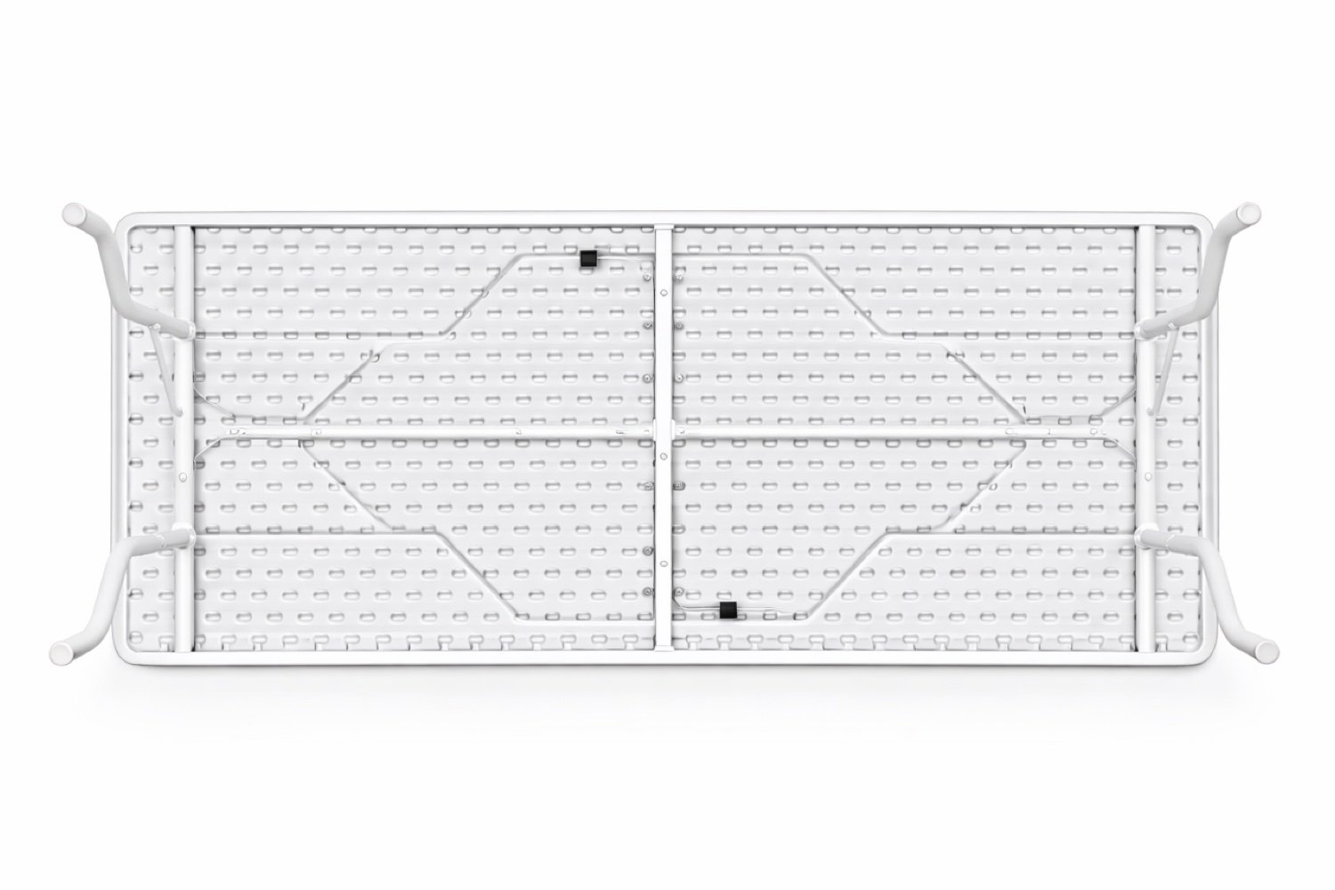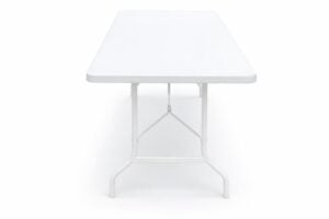 De perfecte combinatie van sterkte, stabiliteit en gebruiksgemak. Deze klaptafel is uitgerust met een wit HDPE-blad, dat uit één stuk is gegoten voor maximale stevigheid. In het blad zitten handige uitsparingen waarin het onderstel precies past wanneer de tafel wordt ingeklapt – zo blijft alles compact en gemakkelijk op te bergen. Het frame is gemaakt van wit gelakte stalen buizen en voorzien van een interne verstevigingsstang in het blad, waardoor deze tafel aanzienlijk stabieler is dan vergelijkbare modellen. Dankzij het duurzame materiaal is de tafel geschikt voor binnen- én buitengebruik, en eenvoudig schoon te maken na elk gebruik. Voor grootschalige toepassingen, zoals evenementen of verhuur, is er een bijpassende trolley verkrijgbaar waarmee je tot 30 tafels tegelijk kunt vervoeren.