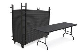 Combineer en creëer jouw perfecte set-up: Gebruik deze klaptafels in combinatie met onze klapstoelen en transporttrolley voor een snelle, efficiënte en professionele opstelling bij elk evenement.