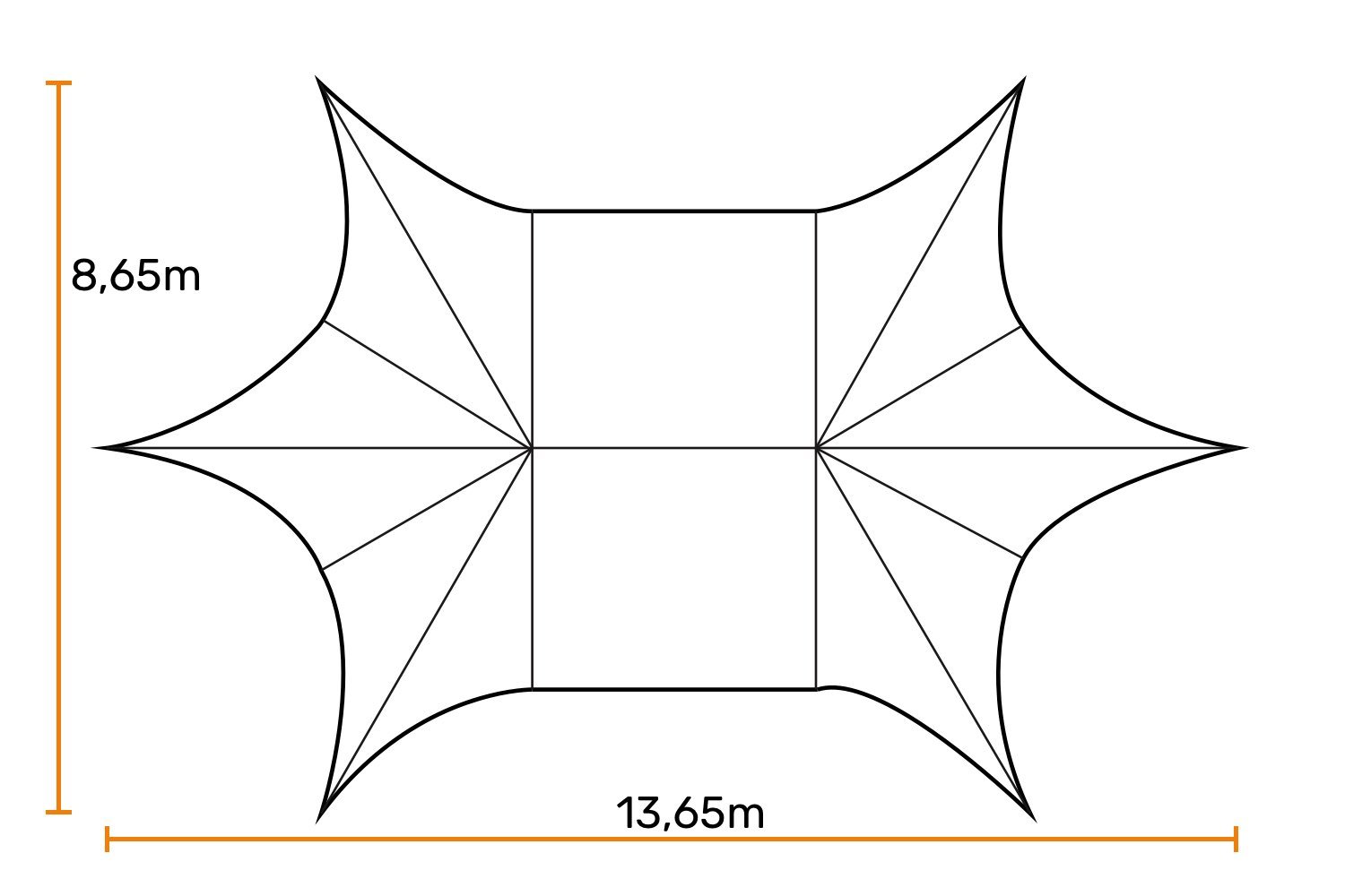 Afmeting 8,65 x 13,65m
