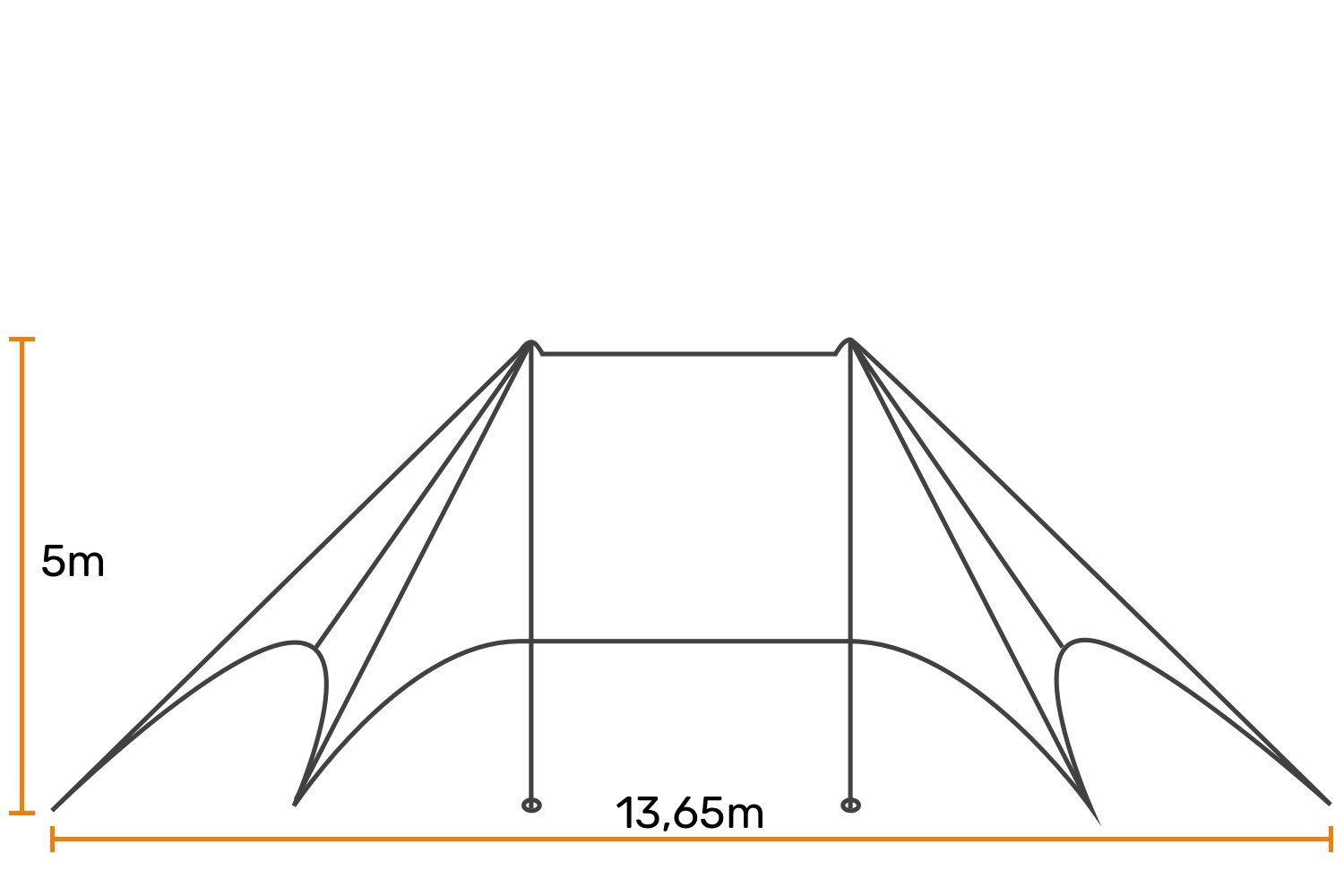 Stertent dubbelmast Starmate: 8,65m x 13,65m